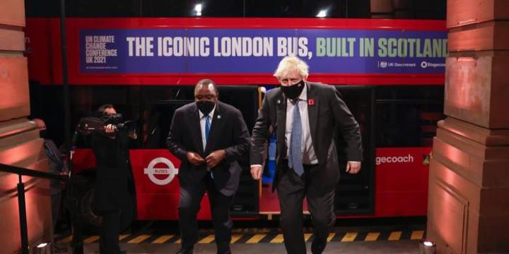 Africa-Press – Kenya. A London Red Bus dropped British Prime Minister Boris Johnson and President Uhuru Kenyatta at a reception for the UN Climate Change Conference (COP26) in Glasgow, Scotland, Britain.