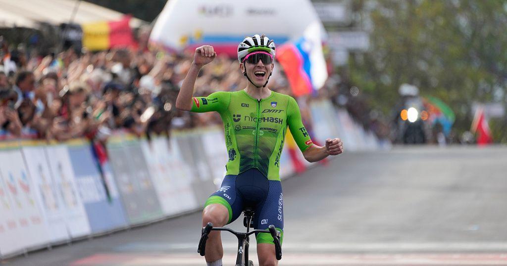 Slovenian rider Tadej Pogacar took gold at the UCI Road World Championships men’s elite road race in Kigali, Sep. 28, 2025