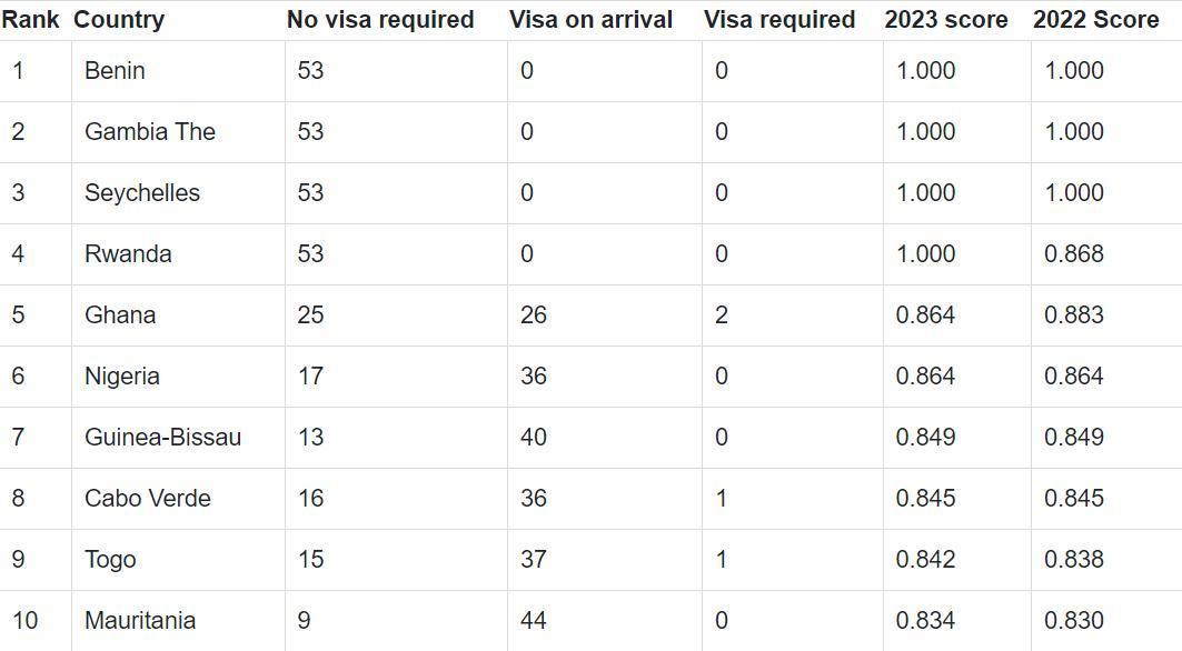 Below are 10 African countries with the most relaxed visa policies in 2023: