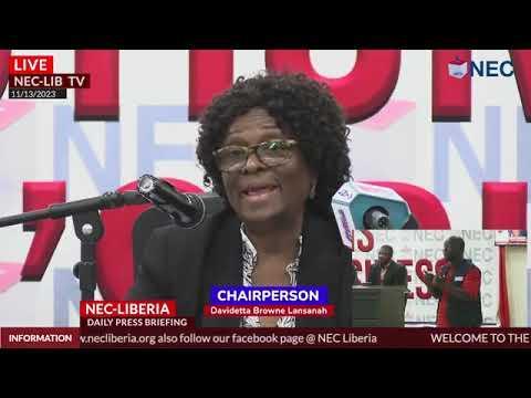 11/13/2023 RUNOFF PRESIDENTIAL ELECTION DAILY PRESS BRIEFING NEC LIBERIA 2023-11-19 31 11/13/2023 RUNOFF PRESIDENTIAL ELECTION DAILY PRESS BRIEFING NEC LIBERIA Africa-Press – Liberia. . For More News And Analysis About Liberia Follow Africa-Press