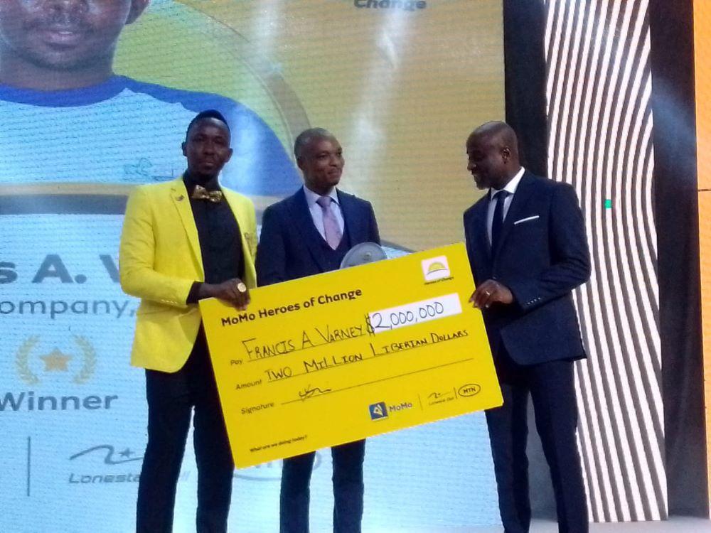 The grand finalist, Mr. Varney was awarded a certificate, Lonestar Cell MTN MoMo Heroes of Change Golden Award, and L$2 million as the grand winner.