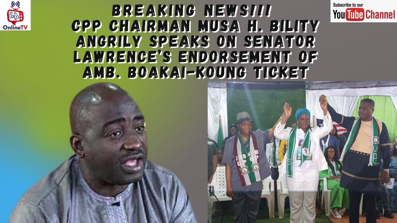 CPP Chairman Bility Angrily Speaks on Sen. Lawrence’s Endorsement of Boakai-Koung Ticket 2023-05-22 20 CPP Chairman Bility Angrily Speaks on Sen. Lawrence’s Endorsement of Boakai-Koung Ticket Africa-Press – Liberia. . For More News And Analysis About Liberia Follow Africa-Press