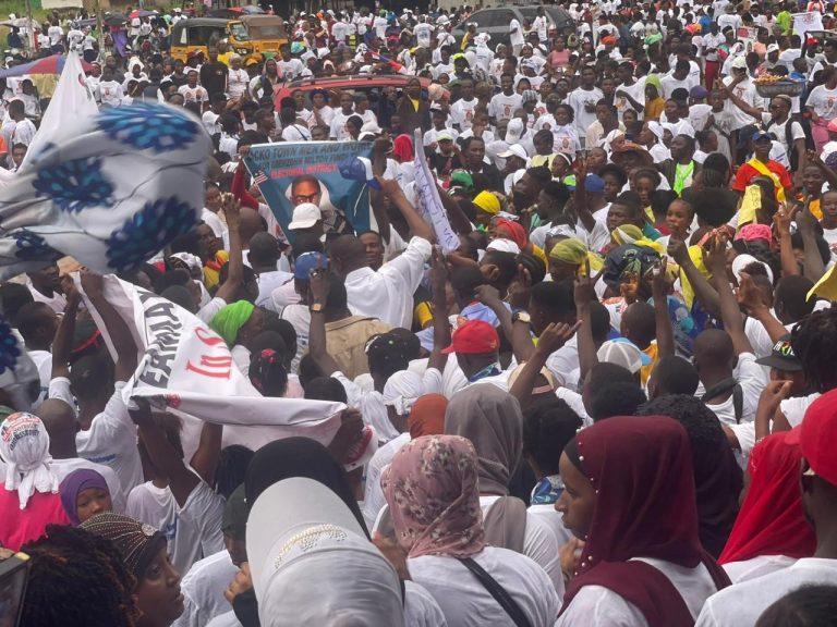 Additionally, Mr. Cummings, accompanied by his Vice Standard Bearer Counsellor Charlyne Brumskine, attended the closing campaign ceremony of Grand Bassa County Senatorial Aspirant Gbehzongar Findley in Buchanan on Sunday, October 8. Mr. Findley, a former Senator of Grand Bassa County and President Pro-Tempore of the Liberian Senate, is seeking re-election. The impressive ceremony was attended by thousands of Grand Bassa County citizens.