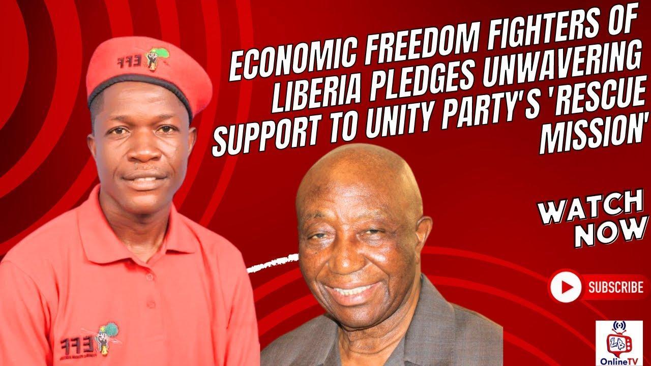 Economic Freedom Fighters of Liberia Pledges Unwavering Support to Unity Party’s ‘Rescue Mission’ 2023-08-20 26 Economic Freedom Fighters of Liberia Pledges Unwavering Support to Unity Party's 'Rescue Mission' Africa-Press – Liberia. . For More News And Analysis About Liberia Follow Africa-Press