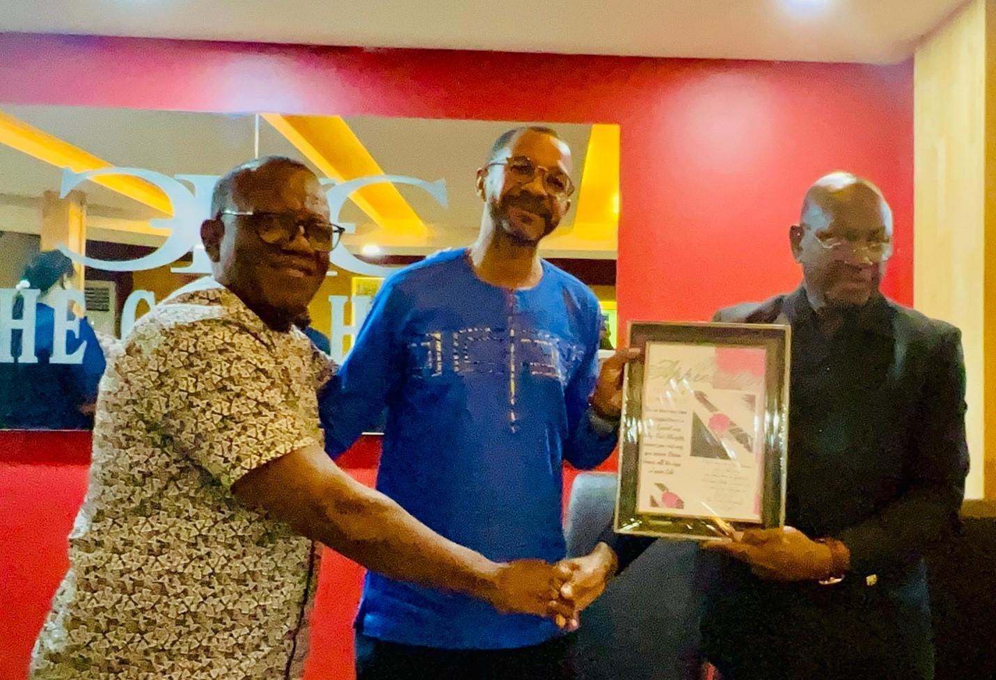 EPA Executive Director and Chief Executive Office (CEO), Prof. Wilson K. Tarpeh presented a certificate of appreciation to Mr. Rodriques on behalf of the Board of Directors, Management and Staff of the Agency at a dinner held in his (Rodriques) honor at Cape Hotel in Monrovia.