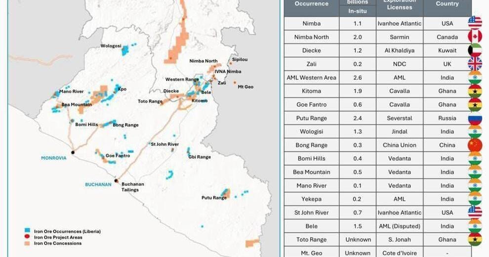 For nearly 20 years, the rail has operated as a bottleneck. Geological surveys show Liberia holds more than 17 billion tons of iron ore, with an estimated 12 billion tons located along or near the Yekepa–Buchanan corridor. Roughly 9 billion tons of high-grade ore in northern Nimba remains stranded—not because the deposits lack investors, but because other operators cannot gain predictable access to the rail.