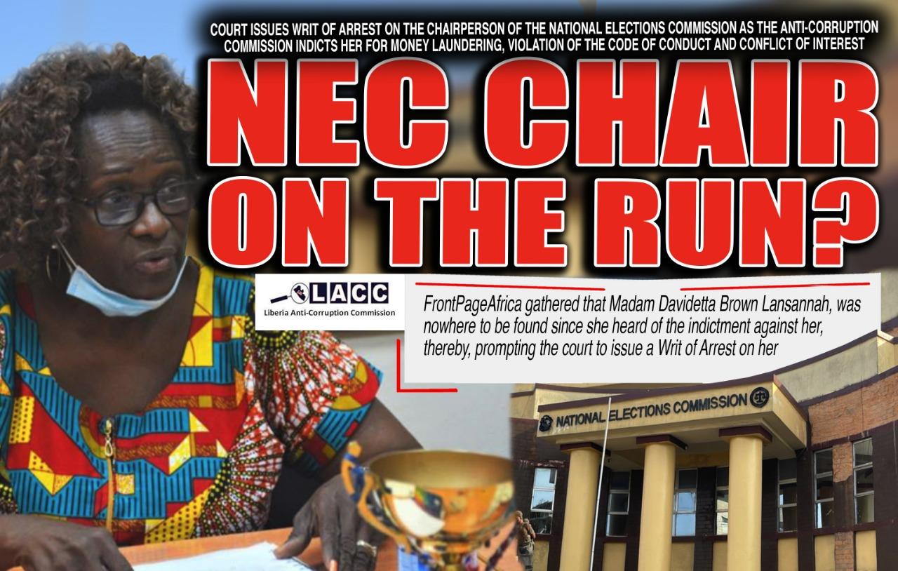 Africa-Press – Liberia. Madam Davidetta Browne Lansanah, the embattled chairperson of the National Elections Commission (NEC), had scheduled a staff meeting for 10:30 Thursday morning, but she suddenly abandoned the meeting and her office on Thursday after she was tipped of an indictment that has been drawn against her by the Liberia Anti-Corruption Commission.