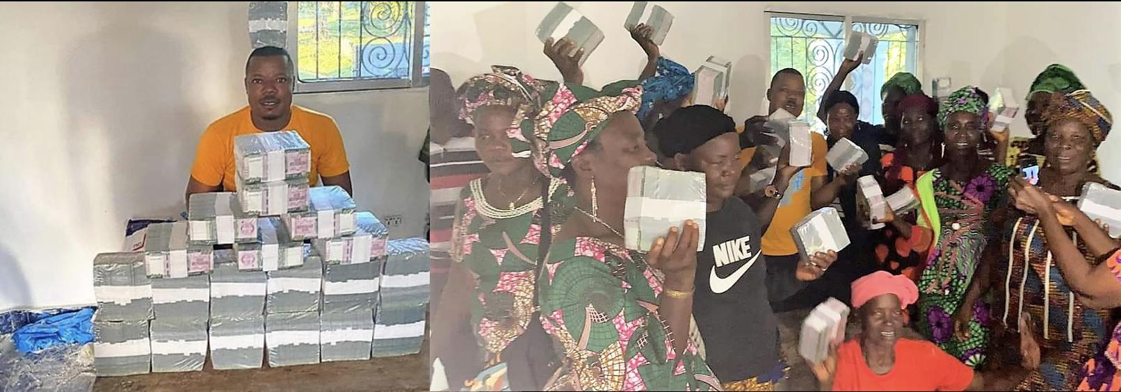 Photos of the two lawmakers distributing millions of brand new Liberian bank dollars in the 100 denomination to citizens as grants in their respective constituencies went viral on the social media early this week.