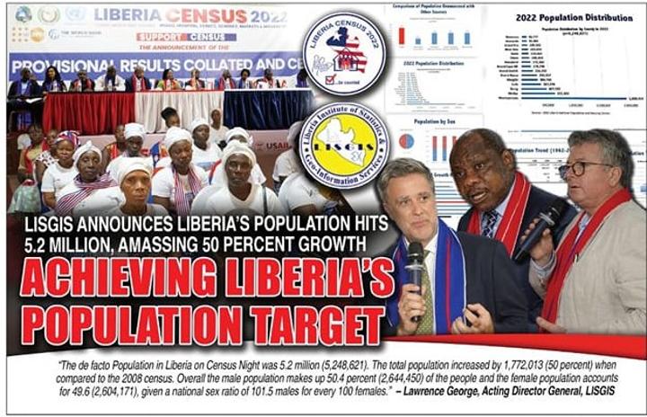 Africa-Press – Liberia. Liberia Institute of Statistics and Geo-Information Services (LISGIS) has announced that Liberia’s population is now 5,248,621, an increase of 50 percent in the last 15 years.