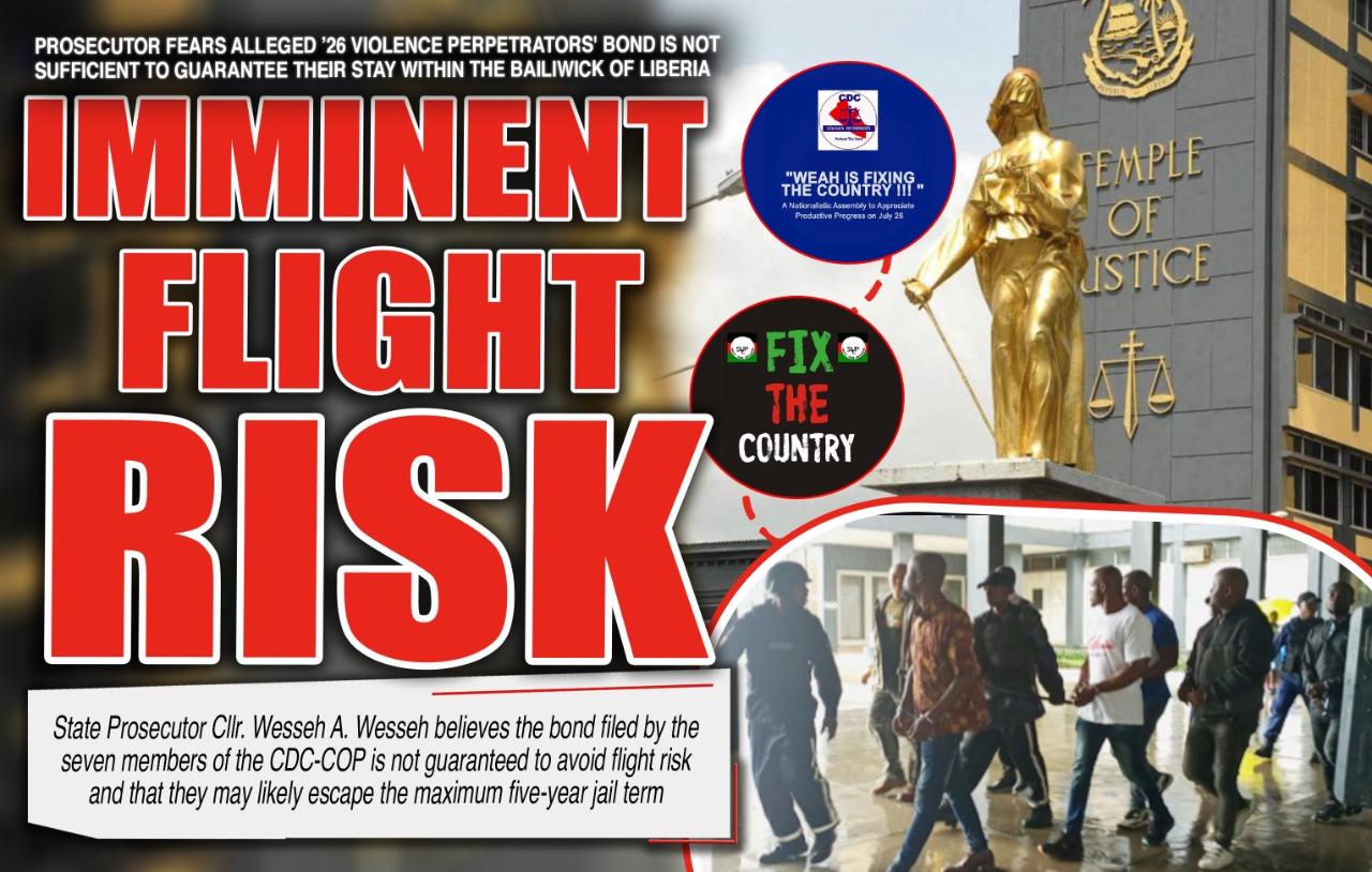 Africa-Press – Liberia. State prosecutor, Cllr. Wesseh A. Wesseh, has expressed fear that the bond filed by the seven CDC-COP suspects linked to the July 26 political violence and brutal humiliation of Christopher Sivili is not sufficient to ensure that they do not abscond justice by fleeing the country.