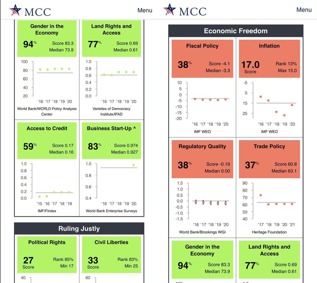 A country is considered to “pass” the scorecard if it passes at least 10 of the 20 indicators including the “Control of Corruption indicator” and, either the Civil “Liberties or Political Rights indicator.”