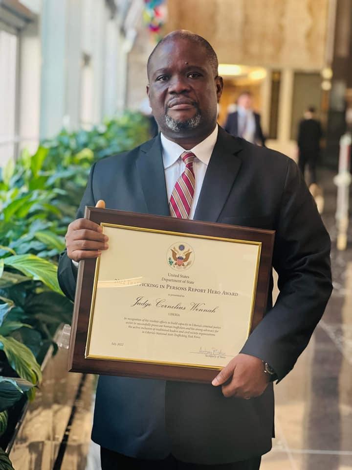 Africa-Press – Liberia. The U.S Department of State through its Secretary General Mr. Antony Blinken has honored and awarded Bong County’s Criminal “Court E” resident Circuit Judge Cllr. Cornelius Flomo Wennah and five others around the world as its “Trafficking in person Heroes for 2022.