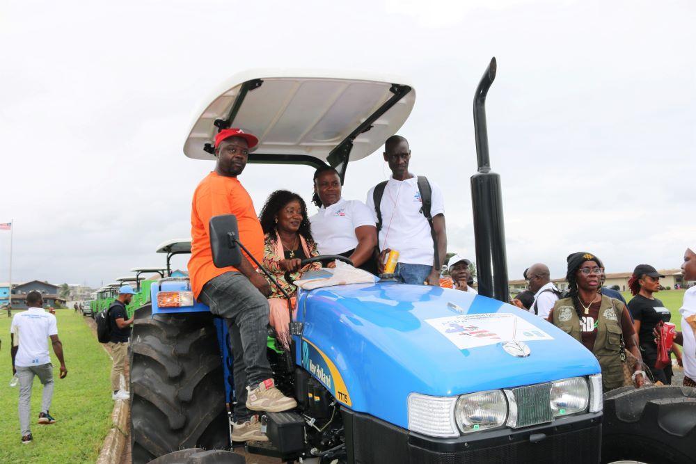 Fourteen tractors and trailers, and over eighteen thousand pieces of assorted basic farming tools, including rice, cassava, sugar cane milling machines, thirty-four sets of post-harvest processing machines, and a rice thresher, were turned over to enhance the labor capacity of farming cooperatives in making use of large-scale and a more mechanized approach to farming.
