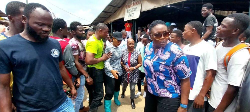 Mrs. Cummings accompanied by senior CPP stalwarts, partisans, and supporters toured and engaged with community leaders in Block-C, D, E, and surrounding areas and later addressed group of young people at the Roberts Kpadeh Intellectual Center.