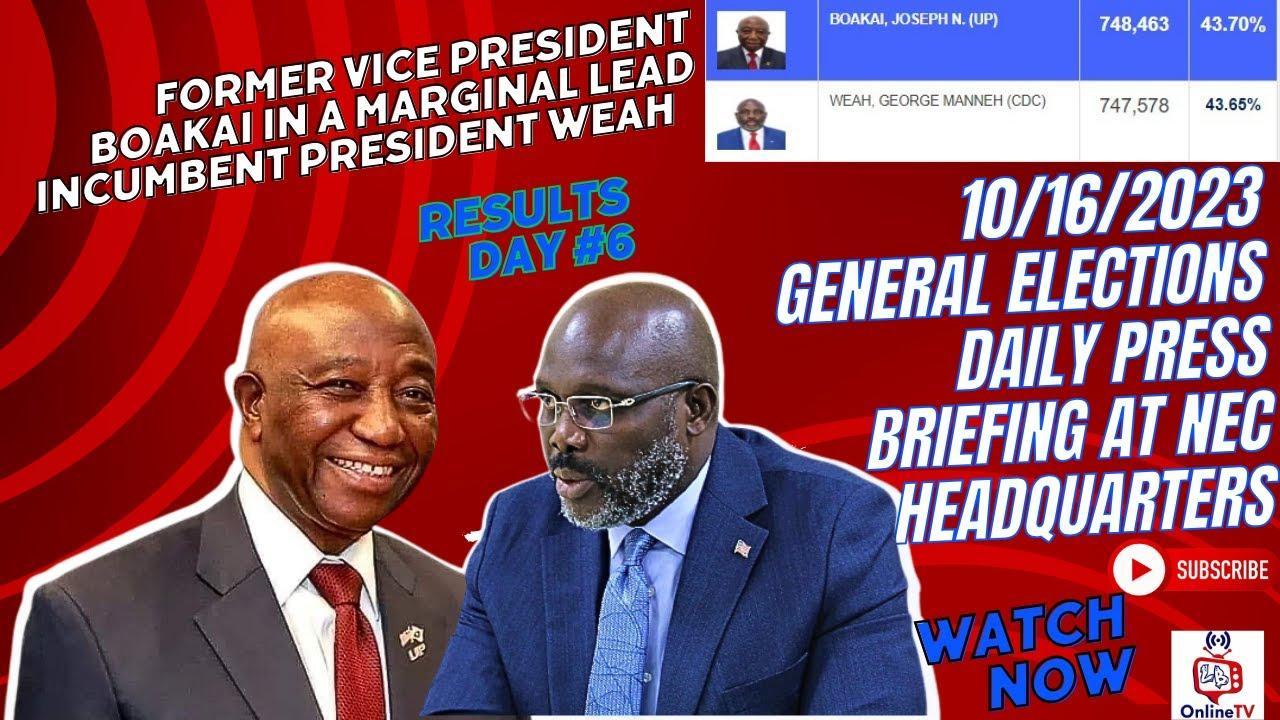 Opposition Amb Boakai Leads Presidential Preliminary Day 6 Results With 885 Margin 2023-10-22 23 Opposition Amb Boakai Leads Presidential Preliminary Day 6 Results With 885 Margin Africa-Press – Liberia. . For More News And Analysis About Liberia Follow Africa-Press