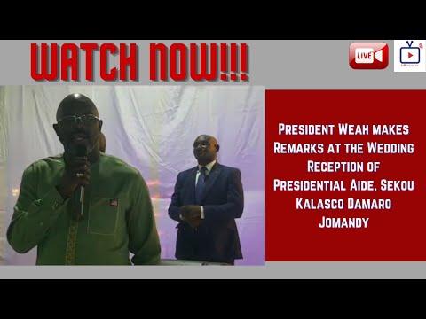 President Weah makes Remarks at the Wedding Reception of Presidential Aide, Sekou Kalasco Damaro 2021-12-25 95 President Weah makes Remarks at the Wedding Reception of Presidential Aide, Sekou Kalasco Damaro Africa-Press – Liberia. For More News And Analysis About Liberia Follow Africa-Press