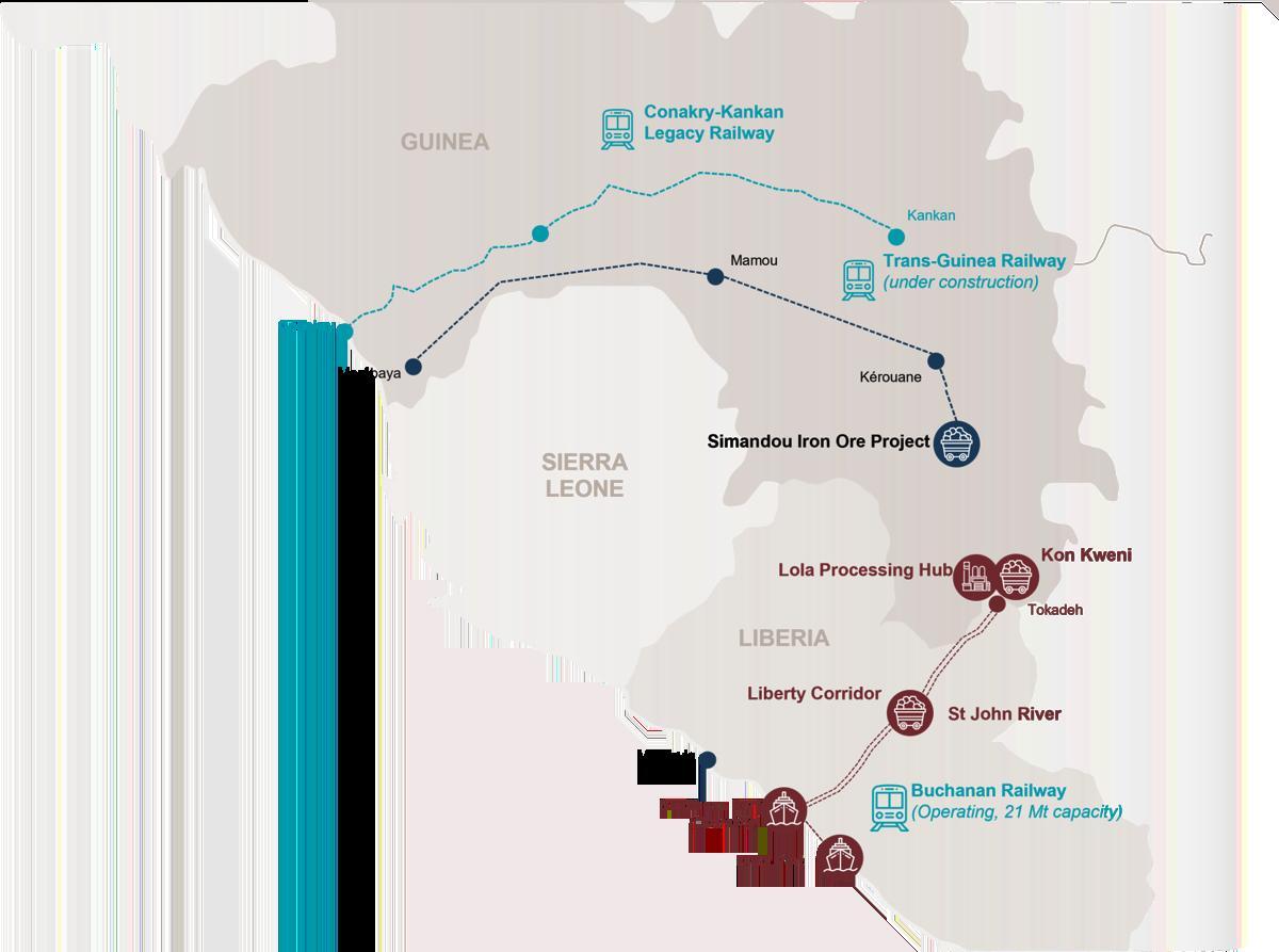 The agreement grants Ivanhoe Liberia Ltd., a subsidiary of U.S.-based Ivanhoe Atlantic Inc., guaranteed development rights and regulated access to Liberia’s government-owned Yekepa–Buchanan heavy rail line and the Port of Buchanan for the transport of ultra-high-grade iron ore from the Kon Kweni project in Guinea’s Nimba region. The Kon Kweni project is part-owned by the Government of Guinea and contains ore grades exceeding 67 percent iron.