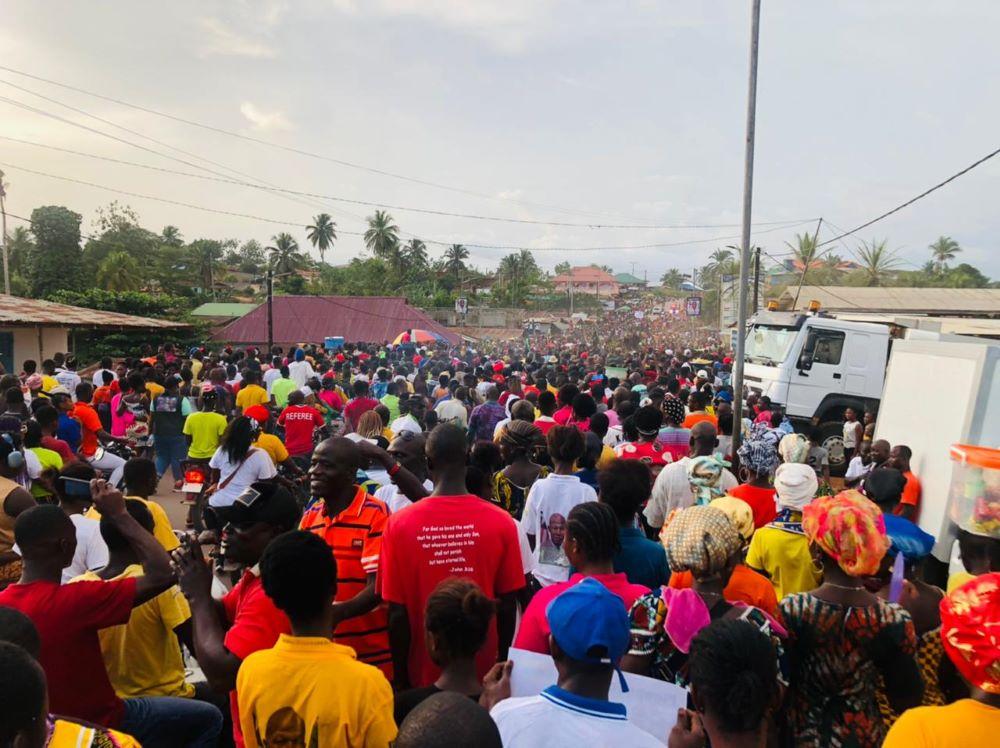 Thousands of Liberians loyal to the re-election bids of Dr. Chambers and Liberian President, George Weah, stormed the principal street to welcome him.