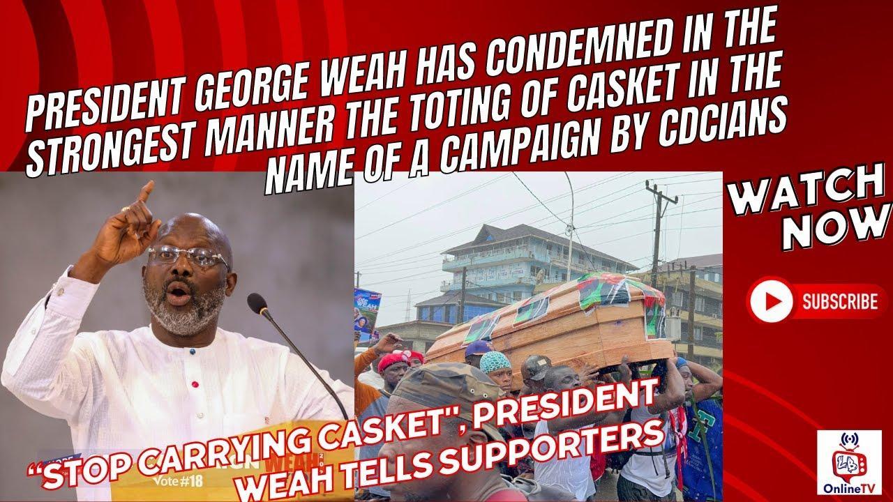 “Stop Carrying Casket” President George Manneh Weah Angrily Caution CDCIANS 2023-08-13 29 “Stop Carrying Casket" President George Manneh Weah Angrily Caution CDCIANS Africa-Press – Liberia. . For More News And Analysis About Liberia Follow Africa-Press