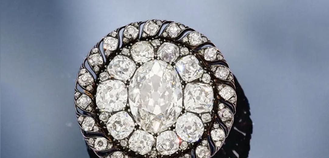وتتوسط البروش الدائري، الذي يبلغ قطره نحو 45 ملليمتراً، ماسة بيضوية كبيرة من عيار 13.04 قيراطاً، محاطة بنحو مئة ماسة قديمة مقصوصة.