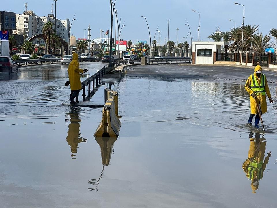 أفريقيا برس – ليبيا. تسبب هطول الأمطار بغزارة منذ ليل الخميس،في غرق عدد من شوارع طرابلس، ونشرت مديرية أمن طرابلس صورا أظهرت جهود رجال شركة المياه والصرف الصحي وشركة الخدمات العامة في سحب المياه الراكدة.