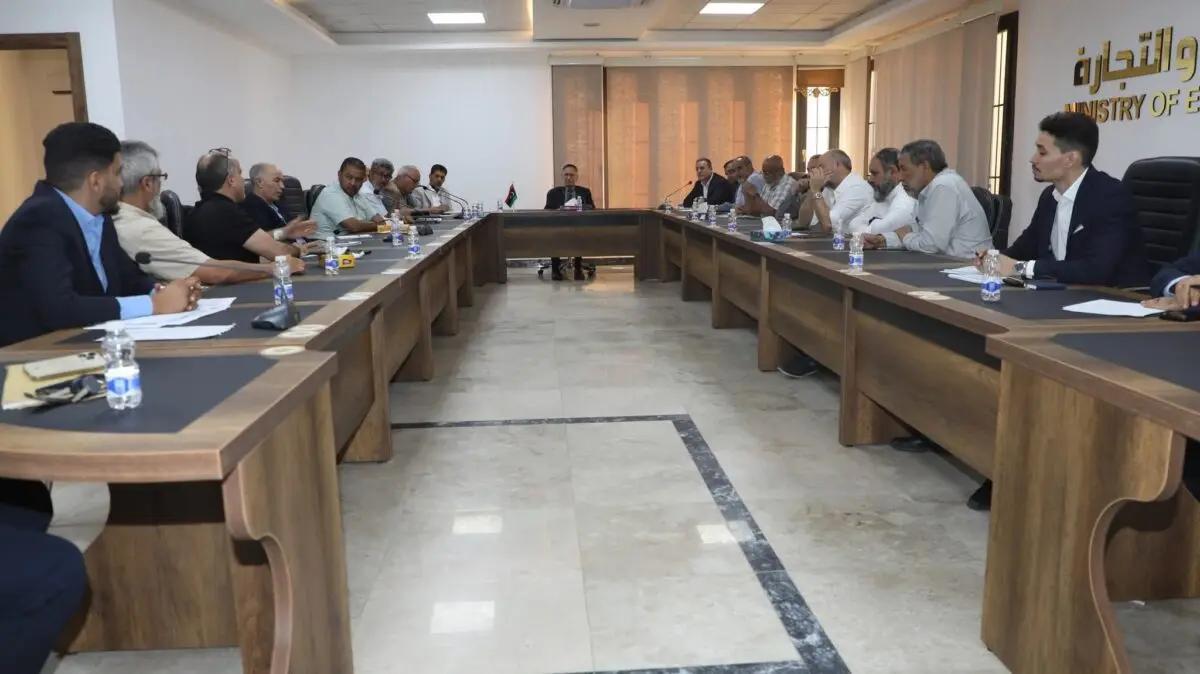 عقد وزير الاقتصاد والتجارة محمد الحويج اجتماعًا موسعًا، بحضور رئيس لجنة إدارة غرفة التجارة والصناعة والزراعة طرابلس أنور أبوستة، ومديري الإدارات والمكاتب المختصة بالوزارة، بالإضافة إلى عدد من أصحاب الأعمال والشركات.
