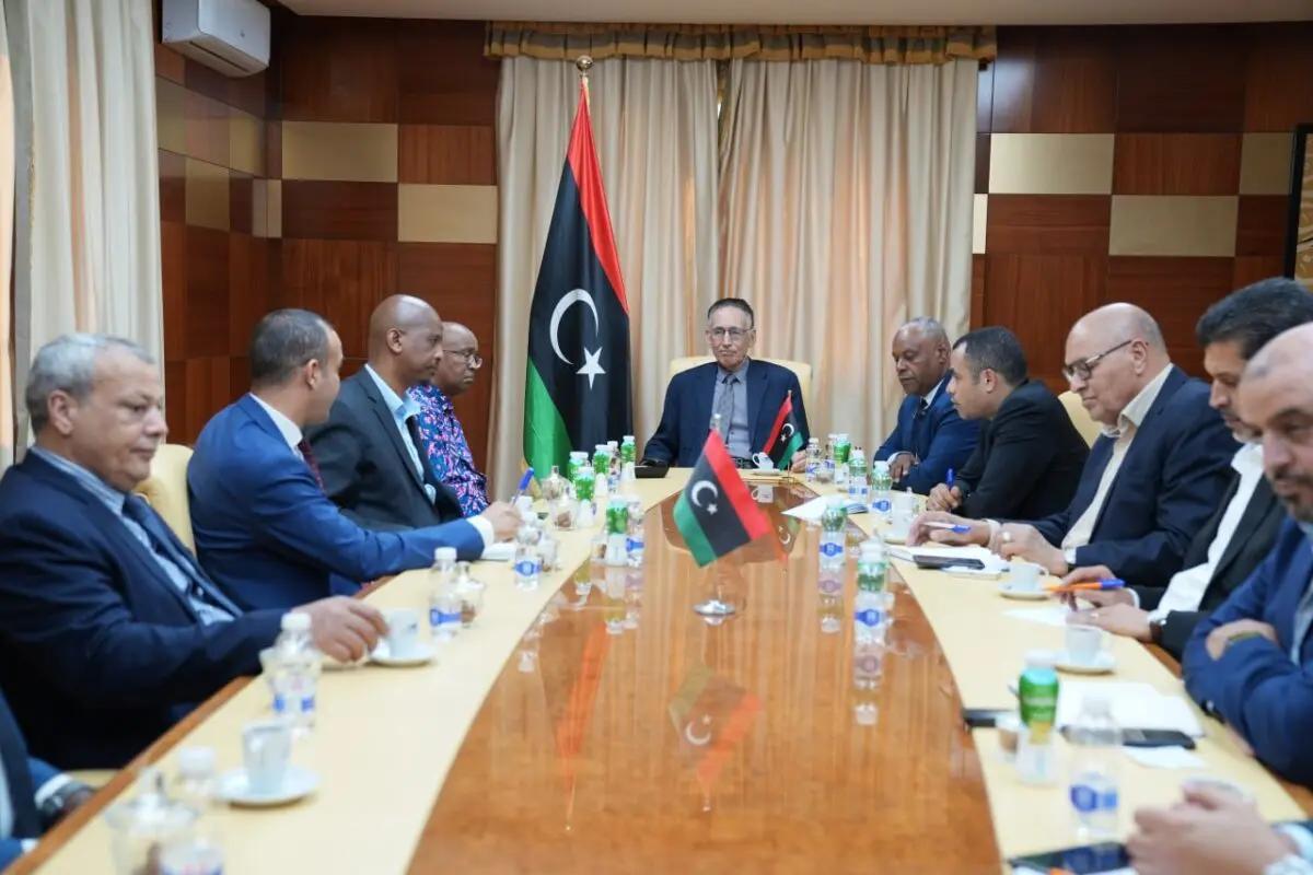 أفريقيا برس – ليبيا. عقد وزير الاقتصاد والتجارة بحكومة الوحدة الوطنية محمد الحويج، اجتماعًا بديوان الوزارة مع وفد رفيع المستوى من الاتحاد الإفريقي برئاسة السيد حمد جبران، رئيس اللجنة الدائمة لتنفيذ ومتابعة أجندة الاتحاد الإفريقي 2063 بديوان مجلس الوزراء، وبمشاركة وفود من مفوضية الاتحاد الإفريقي والوكالة الإنمائية للاتحاد الإفريقي AUDA-NEPAD والمجلس الاقتصادي والاجتماعي والثقافي الإفريقي ECOSOCC.