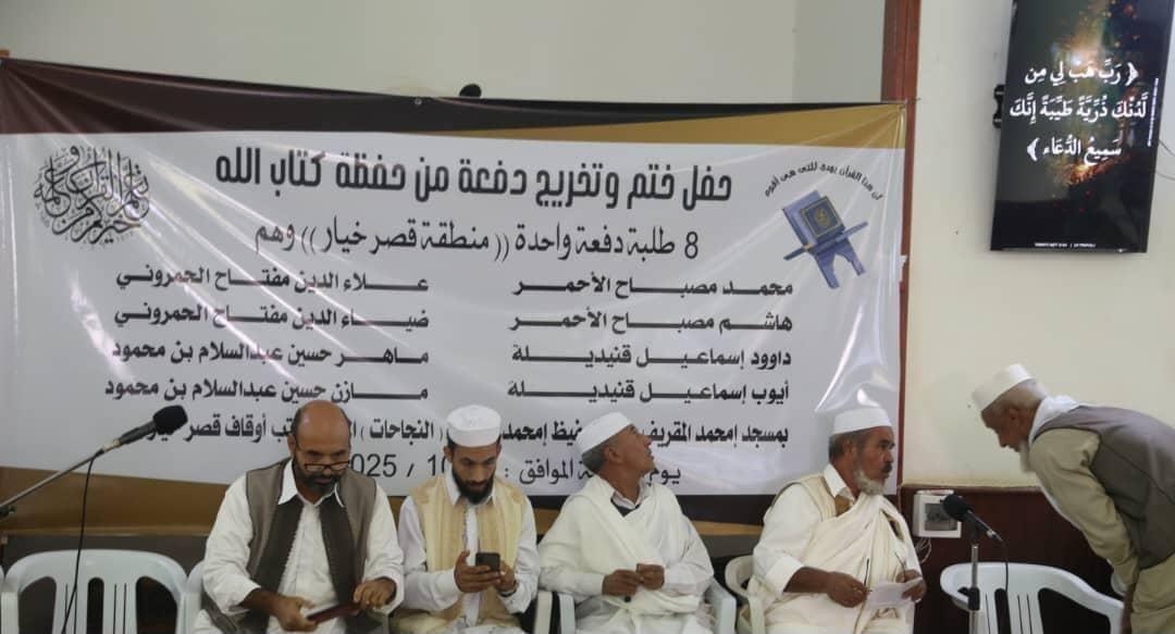 حفل ختم وتخرج دفعة من حفظة كتاب الله ببلدية قصر خيار 2025-10-05 1 حفل ختم وتخرج دفعة من حفظة كتاب الله ببلدية قصر خيار أفريقيا برس – ليبيا. 1 من 4 يمكنكم متابعة المزيد من أخبار و تحليلات عن ليبيا عبر موقع أفريقيا برس