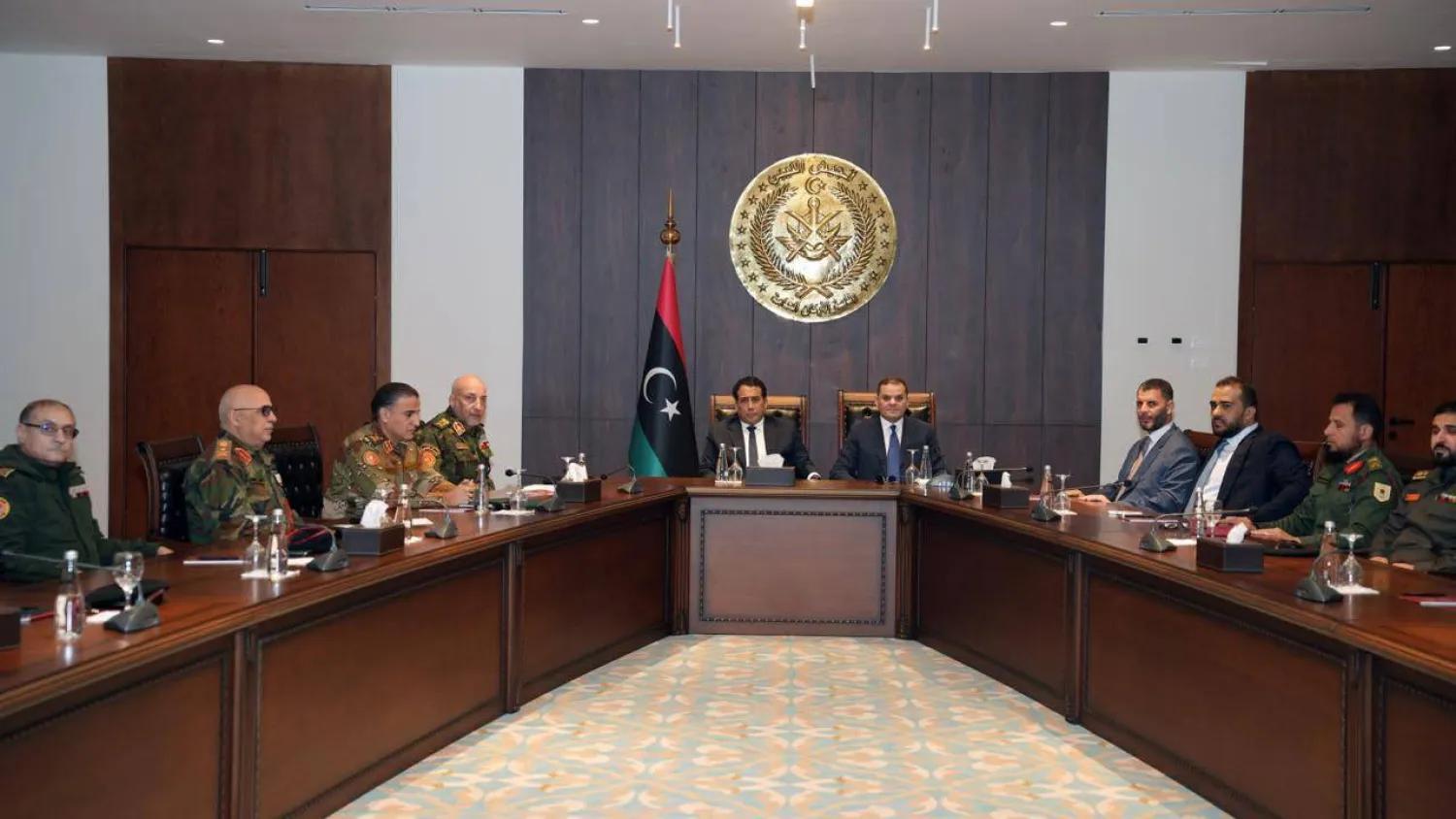 وقال المجلس الرئاسي، الاثنين، إن الاجتماع ضم عبد الحميد الدبيبة رئيس حكومة «الوحدة» المؤقتة وزير الدفاع، ورئيس الأركان العامة محمد الحداد، ووزير الداخلية المكلف عماد الطرابلسي، بالإضافة إلى قيادات أمنية وعسكرية عديدة، ومدير إدارة الاستخبارات العسكرية.