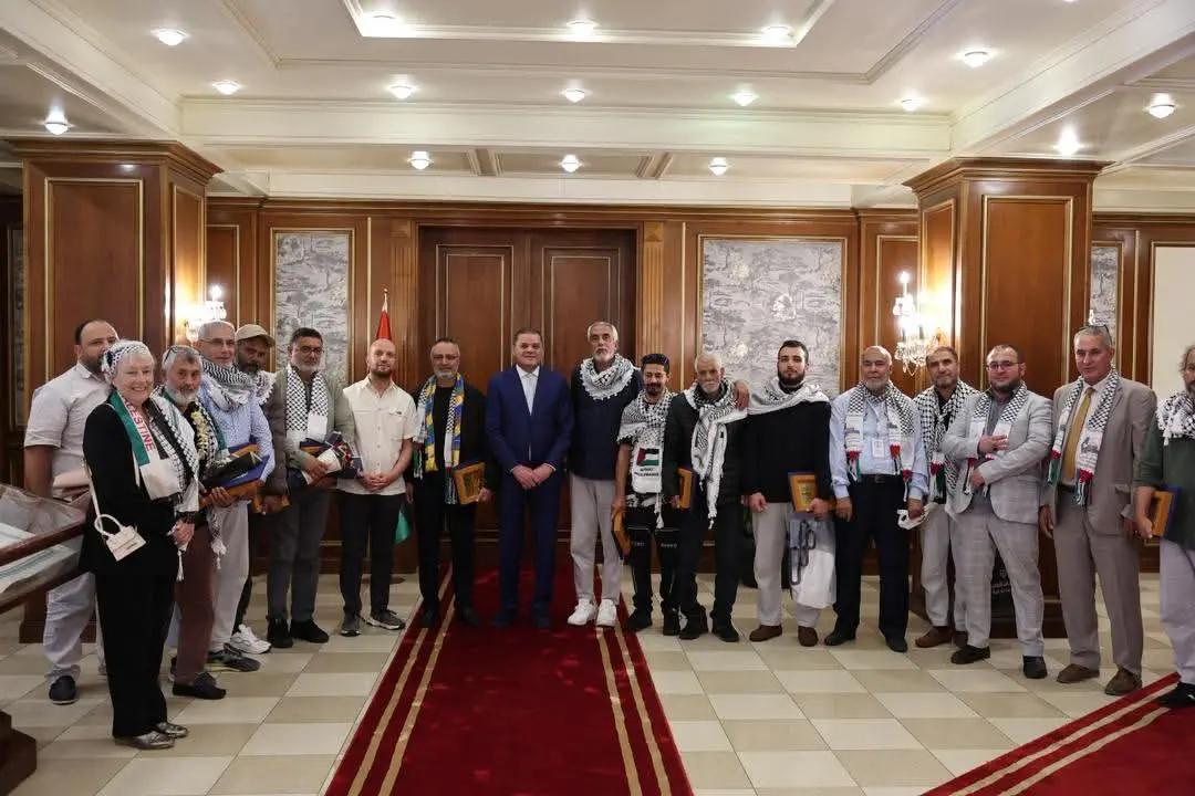 أفريقيا برس – ليبيا. استقبل رئيس حكومة الوحدة الوطنية عبدالحميد الدبيبة، مساء الأربعاء مجموعة من المواطنين الليبيين الذين شاركوا في قافلة الصمود على متن سفينة “عمر المختار”، المتجهة إلى قطاع غزة، بالإضافة إلى عدد من الشخصيات الأجنبية الذين رافقوا القافلة في مهمتها الإنسانية.