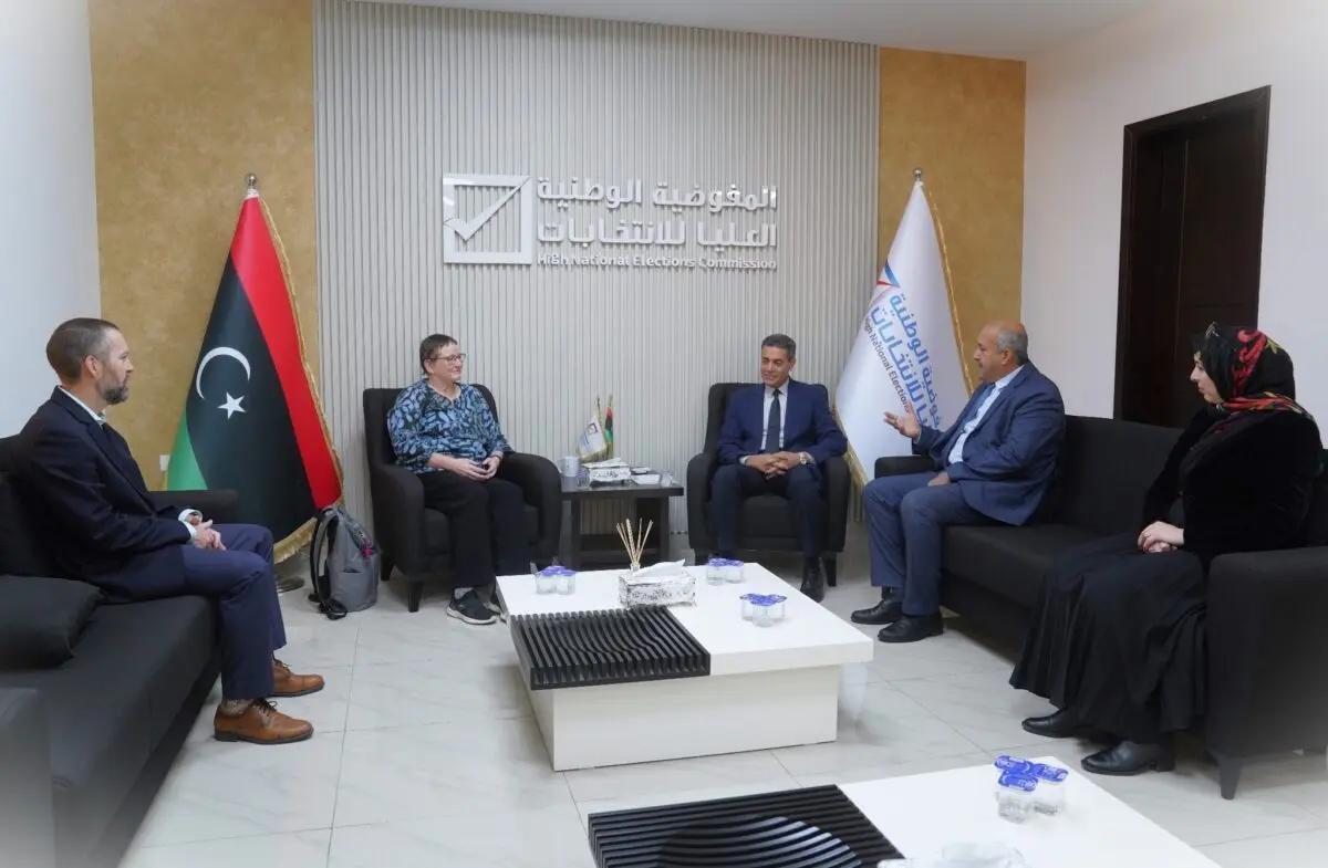 أفريقيا برس – ليبيا. استقبل رئيس مجلس المفوضية الوطنية العليا للانتخابات، عماد السايح، صباح الأربعاء 3 ديسمبر 2025، السفيرة الكندية لدى ليبيا، أليسون ستيوارت، بحضور عضو مجلس المفوضية رباب حلب، وذلك بمقر ديوان مجلس المفوضية في طرابلس.