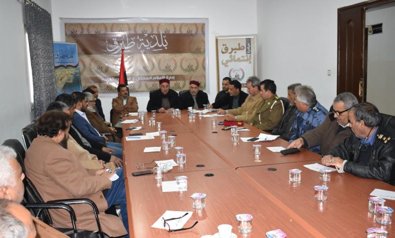 وحضر الاجتماع رئيس وأعضاء المجلس التسييري، ومدير مركز طبرق الطبي، ومراقبة الصحة، والهلال الأحمر، وصحة المجتمع والإصحاح البيئي والحرس البلدي والزراعة، ومسؤولون آخرون.