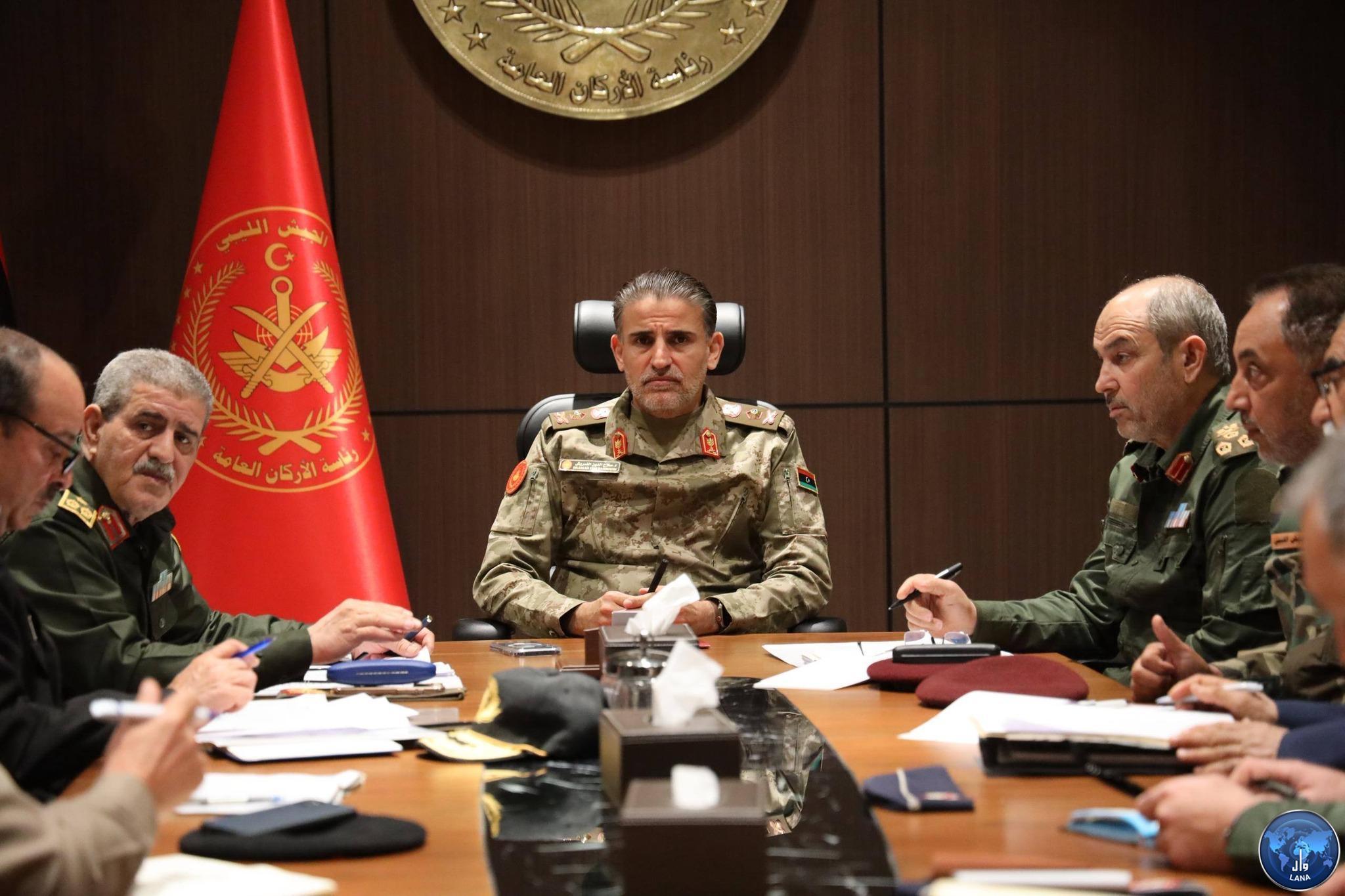 عقد رئيس الأركان العامة للجيش الليبي الفريق “صلاح الدين النمروش”، الخميس اجتماعًا موسعًا ضم مدير إدارة التدريب العميد “مصطفى راشد،” وأمراء شعب التدريب بالمناطق العسكرية والأركانات النوعية (البرية، البحرية، الجوية، والدفاع الجوي)، وذلك لمتابعة وتقييم حصيلة برامج التدريب الخارجي المنفذة خلال العام 2025.
