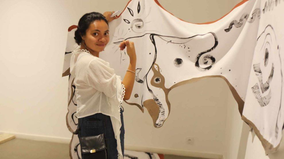 « Balade Mentale est une expérience unique qui invite le public à explorer les profondeurs de la psyché humaine à travers un dédale artistique. L’installation, conçue comme un labyrinthe symbolisant le cheminement de l’esprit, se compose d’un impressionnant assemblage de pièces textiles s’étirant sur soixante mètres de long, d’un masque élaboré à partir de pièces métalliques, et d’un miroir réfléchissant. L’inspiration pour mes œuvres a évolué au fil du temps, passant de simples dessins à une fusion audacieuse de diverses techniques artistiques, notamment la peinture, la couture, la sculpture, et bien d’autres», explique Arilala Ophélia Ralamboson.