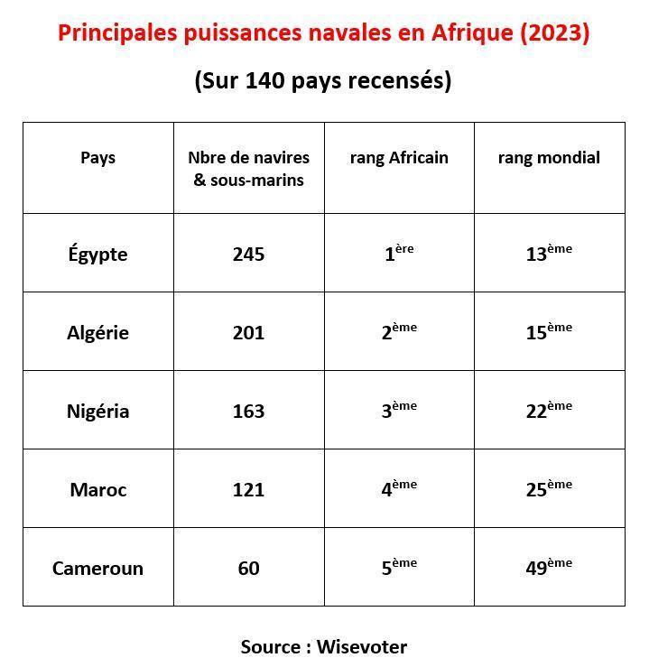 Selon le classement 2023 établi par le site américain spécialisé Wisevoter, la Chine se positionnerait en tête des plus grandes puissances maritimes du monde, devant les États-Unis, la Russie, la Corée du Nord et le Japon ; respectivement deuxième, troisième, quatrième et cinquième dans le classement.