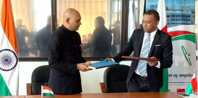 Africa-Press – Madagascar. L’Inde et Madagascar renforcent la coopération en matière de radiodiffusion. Un protocole d’accord sur la coopération et la collaboration en matière de radiodiffusion a été signé, hier, entre l’Office de la Radio et de la Télévision Malagasy (ORTM) et Prasar Bharati, la compagnie de radio et de télévision publique indienne. Le protocole d’accord vise l’échange de programmes, l’exploration de la coproduction de programmes et la formation, à travers des échanges de personnel. Grâce à cet accord, la TVM diffusera par exemple des programmes issus des productions internes de Prasar Bharati dans les domaines de la culture, de l’éducation, de la science, du divertissement, du sport, de l’information ainsi que d’autres domaines d’intérêt mutuel. Les deux parties exploreront les opportunités de coproduction liées à des sujets d’intérêt commun et organiseront une formation pour le personnel de la TVM en Inde. Le protocole d’accord a été signé par l’ambassadeur Abhay Kumar et Jean Yves Belalahy Directeur Général de l’ORTM.