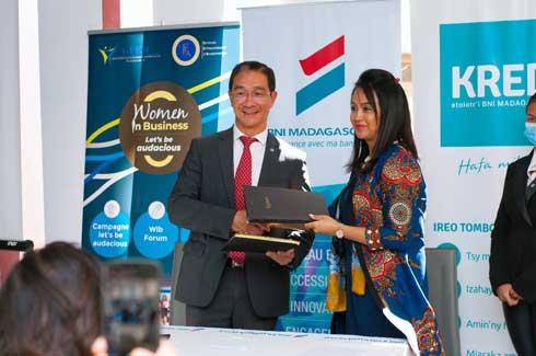 Africa-Press – Madagascar. BNI Madagascar s’engage à apporter son appui technique et financier aux entreprises affiliées au Groupement des Femmes Entrepreneurs de Madagascar (GFEM). Une convention de partenariat a été signée, hier, entre les deux entités. Grâce à cet accord, la BNI est disposée à apporter un soutien technique et financier aux entreprises membres de ce groupement, et ce, en conformité avec ses règles d’éligibilité et en fonction des ressources disponibles auprès des partenaires techniques et financiers. « Dans la pratique, cette collaboration se traduira par des séances de formation et d’éducation financière et au crédit en faveur d’une centaine d’entreprises. 50 entreprises bénéficieront du financement de BNI Madagascar et de ses partenaires. Six événements relatifs à la promotion des PME seront également organisés à travers le pays par les deux entités. Sur ce dernier point, BNI Madagascar sera sponsor Or du Women In Business 2022 », a révélé Alexandre Mey, le Directeur Général de BNI Madagascar. « Le GFEM, dans sa fonction de représentation des activités économiques des femmes entrepreneures au niveau national, où il dispose de 14 antennes, est déterminé à avancer avec BNI Madagascar et concrétiser dans les meilleures conditions ce partenariat. Celui-ci remplit toutes les conditions nous permettant d’appuyer nos membres à chaque phase de leurs activités afin d’accroître leur performance », a pour sa part déclaré la présidente du groupement Fanja Razakaboana.