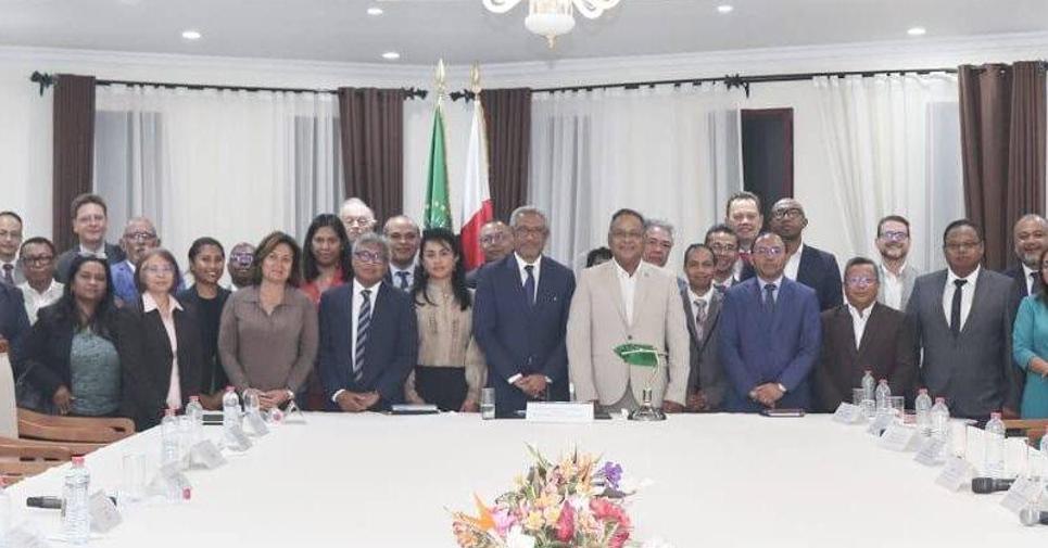 La délégation était composée des représentants du Groupement des Entreprises de Madagascar (GEM), de la Fivondronan’ny Mpandraharaha Malagasy (FIVMPAMA) et de la Fikambanan’ny Orinasa Malagasy (FOM). Plusieurs membres du gouvernement concernés par les réformes économiques ont également pris part à cette rencontre.