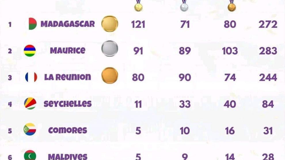 Défi relevé. L’ile hôte a raflé 121 médailles d’or si l’ancien record, également de Madagascar, a été de 103, réalisé en 2007. Madagascar a engrangé 38% des 316 médailles d’or en jeu, soit 121 d’or, avec 71 d’argent et 80 de bronze, 272 en tout. Maurice termine deuxième (91 or-89 ag-103 br) et La Réunion se retrouve à la troisième place (80-90-74). C’est la troisième fois que la Grande ile se hisse à la première place du tableau des médailles après les éditions en 2007 (103-79-53, total 235) et en 1990 (56-52-47,155). Les Seychelles finissent quatrième (11), devant les Comores (5), Maldives (5) et Mayotte (3). Les équipes nationales des dix-neuf disciplines sportives au programme des Jeux ont toutes arraché des médailles à l’issue des dix jours de compétition. L’haltérophilie a été la discipline qui a raflé le plus de médailles : 34 d’or, 11 d’argent et 10 de bronze. C’est un nouveau record des Jeux. Le précèdent record a été de 30, réalisé par les Seychelles en 2011. L’haltérophile Tojo Andriantsitohaina a brillé en actualisant un record des Jeux. Il a aussi obtenu le minima olympique. L’or du sport roi, décroché cette fois par Madagascar, a toujours eu le plus de valeur. Les Barea l’emportent après trente longues années. Deux disciplines collectives ont réalisé, elles aussi, des exploits en remportant à 100% les médailles d’or en jeu, dont quatre pour le basketball, en 5×5 et en 3×3.