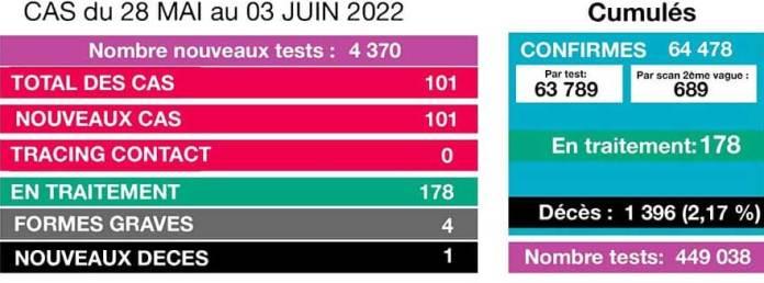 Covid-19 : 101 nouveaux cas et 1 décès entre le 28 mai et le 3 juin 2022