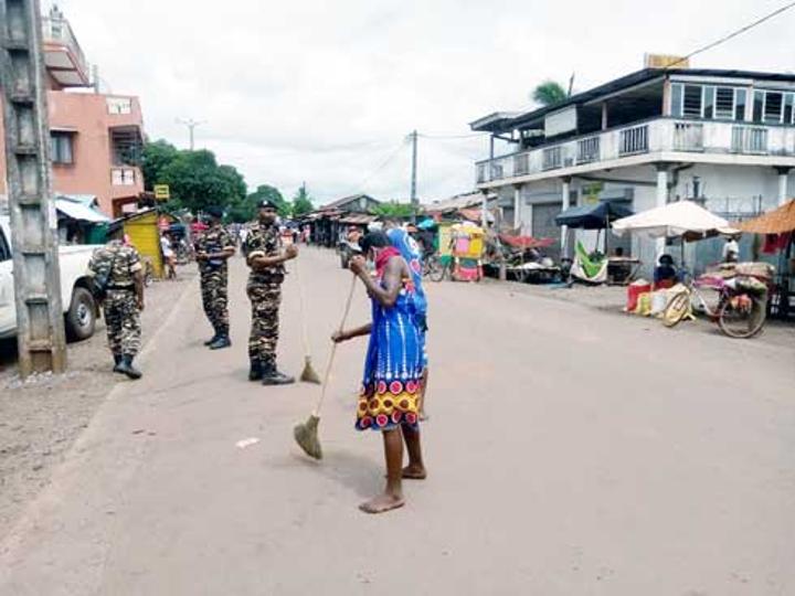 Africa-Press – Madagascar. Après le relâchement dans l’application des gestes barrières dans le cadre de la lutte contre la Covid-19, les forces de l’ordre ont de nouveau sanctionné les personnes qui ne portent pas de masque. C’est le cas dans l’Atsimo Atsinanana où les contrevenants ont été assignés à des travaux d’intérêt général, comme le balayage des rues. Le gouverneur d’Itasy a également sorti une note hier pour la reprise des travaux d’intérêt général à l’encontre de ceux qui ne respectent pas les mesures sanitaires. Pour Antananarivo, la préfecture de police a invité tous les citoyens à respecter les gestes barrières. Le balayage des rues, le curage des canaux ou le nettoyage des marchés font partie des travaux.