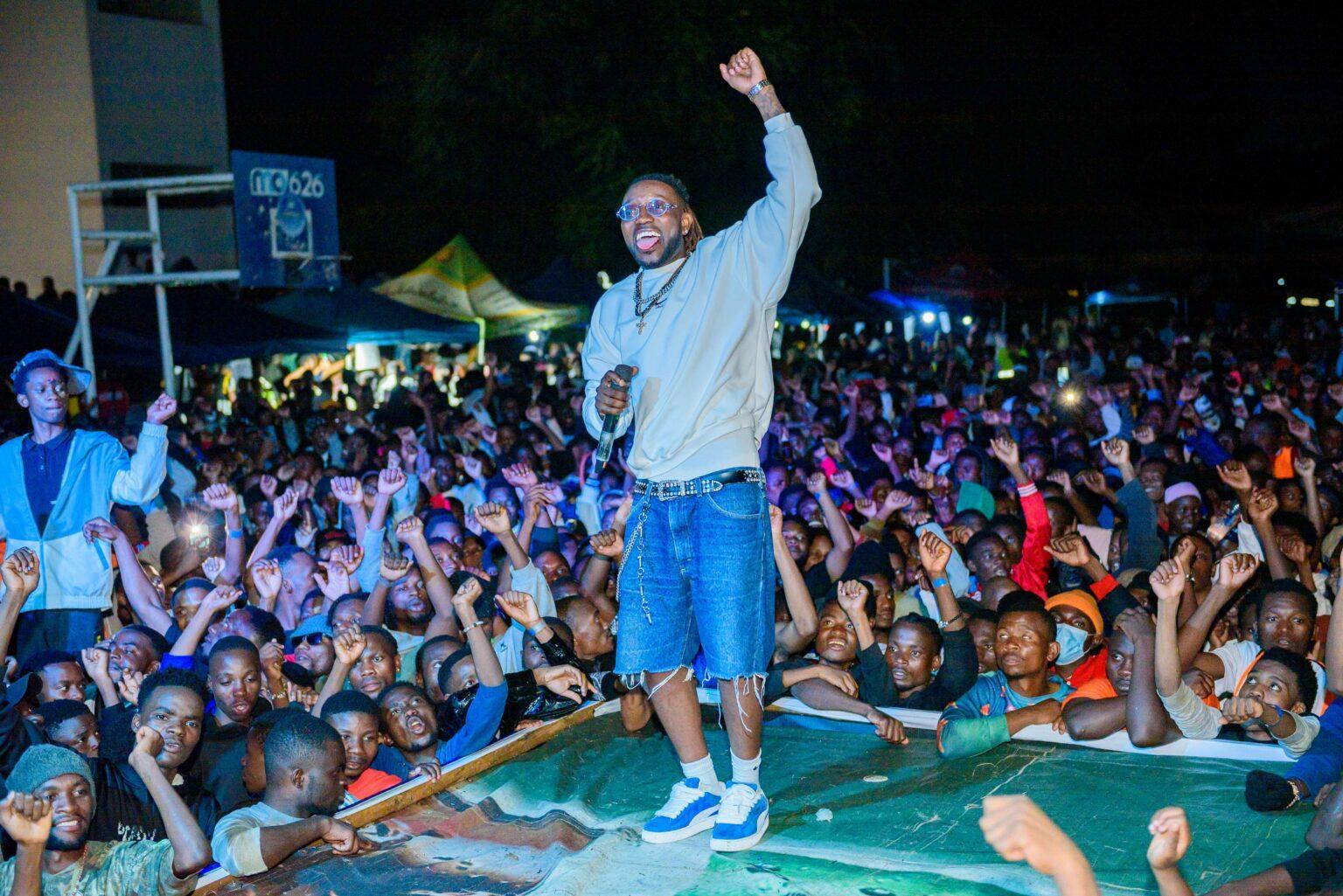The first major wave of excitement came when ‘Sizinantole’ hitmaker Malonie Kyz made a surprise appearance. His entrance triggered an eruption of screams as students rushed forward, phones raised high. His performance was energetic and immersive, effortlessly pulling the audience into a unified chorus as they sang along word for word.