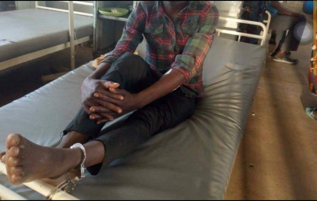 Speaking from bed number 16 where he is chained, Chandiwira claims he went to the station to seek mediation following a misunderstanding over a cellphone he had bought at Mphomwa in Kasungu but police placed him in custody.