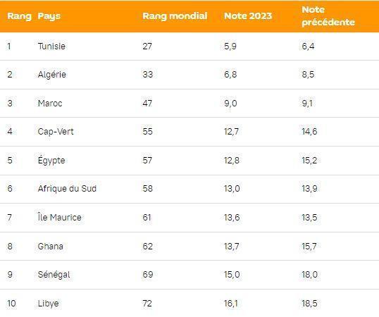 L’Algérie et le Maroc présentent également un indice bas. Le rapport leur attribue respectivement 6,8 et 9,0 points, soit aussi une amélioration par rapport à la fois précédente.