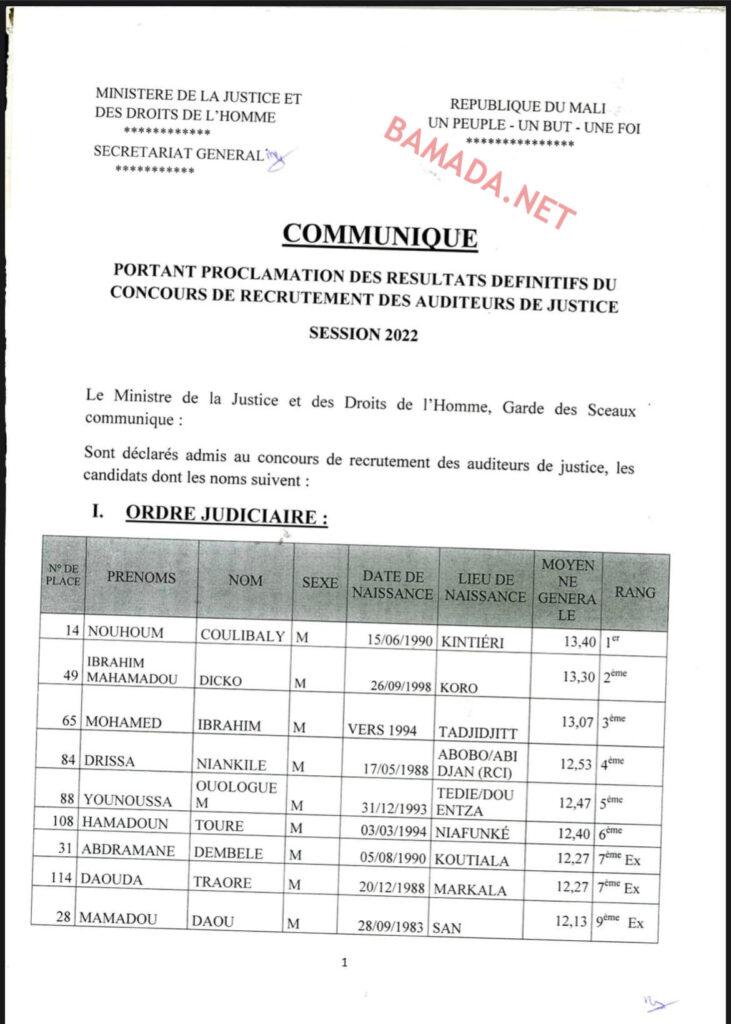 MALI : VOICI LES RÉSULTATS DÉFINITIFS DU CONCOURS DE RECRUTEMENT DES AUDITEURS DE JUSTICE ! 2022-12-31 380 MALI : VOICI LES RÉSULTATS DÉFINITIFS DU CONCOURS DE RECRUTEMENT DES AUDITEURS DE JUSTICE ! Africa-Press – Mali. 1 de 5 Pour plus d’informations et d’analyses sur la Mali, suivez Africa-Press