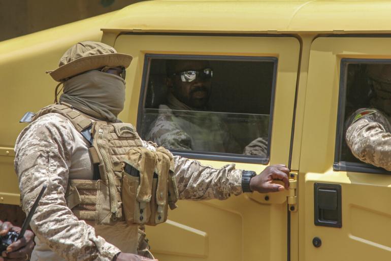 L’organisation régionale avait lourdement sanctionné en janvier la junte du colonel Assimi Goïta, porté à la tête du Mali par un premier coup d’Etat en août 2020 et intronisé président « de la transition » à la suite d’un second putsch, en mai 2021. Le Colonel Assimi Goita (centre), chef de la junte militaire au Mali. Bamako, 22 août 2020.ASSOCIATED PRESS