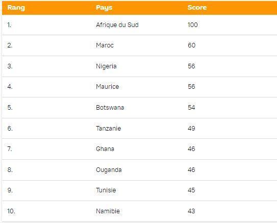 La Tanzanie, qui occupe le 6e rang du classement, ainsi que le Ghana (7e) et l’Ouganda(8e), ont un écart avec leader de plus de 50 points. La Tunisie, 9e, et la Namibie, 10e, complètent le tableau.