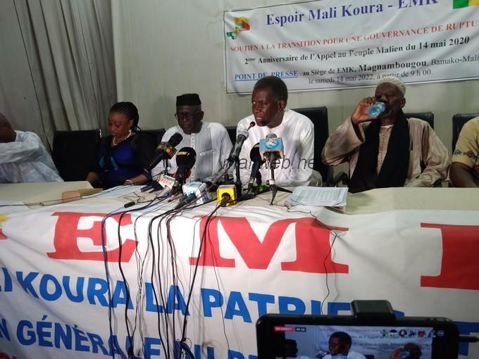 Africa-Press – Mali. A l’occasion du 2e anniversaire de son « Appel au Peuple du Mali pour se rassembler et lutter », Espoir Mali Kura (EMK) dit ne plus reconnaître le comité stratégique du M5-Rfp et son président, Choguel K Maïga. Il appelle par la même occasion à la mise en place d’un gouvernement dirigé par un Premier ministre rompu à la tâche. C’était à la faveur d’une conférence le samedi 14 mai à son siège sis à Magnambougou sous l’égide de son coordinateur Cheick Oumar Sissoko.
