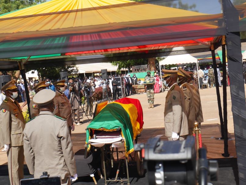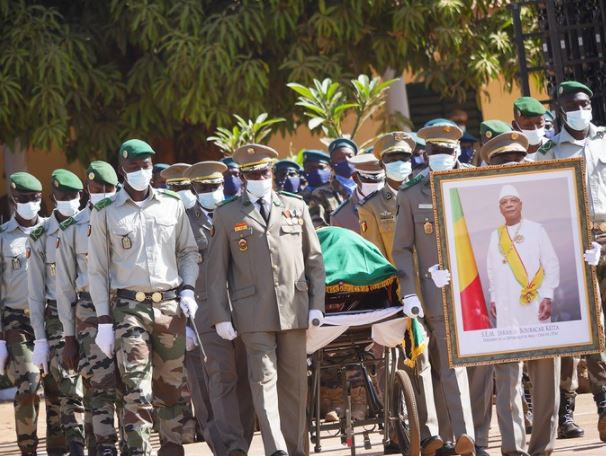 Africa-Press – Mali. La base A du Génie militaire a abrité, ce vendredi matin, les obsèques nationales de l’ancien président de la République du Mali, Ibrahim Boubacar Keita, décédé le dimanche 16 janvier chez lui à Sébénicoro. A ses obsèques, le président de la Transition, le Colonel Assimi GOITA, était représenté par le Premier Choguel K. Maïga.