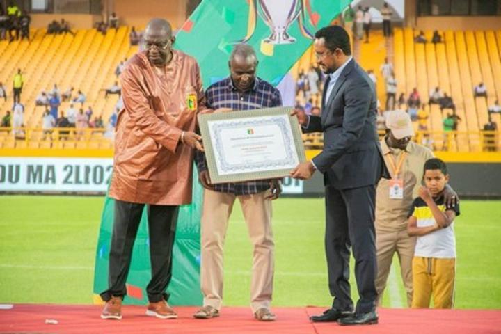 Africa-Press – Mali. L’un des temps forts de la finale de la 62ème édition de la Coupe du Mali, remportée le samedi 10 juin, par le Stade Malien de Bamako, aura été la remise des distinctions honorifiques à certaines personnalités. Parmi les récipiendaires figurent le doyen Papa Oumar Diop, président de la Commission média du Comité National Olympique et Sportif du Mali (Cnosm).